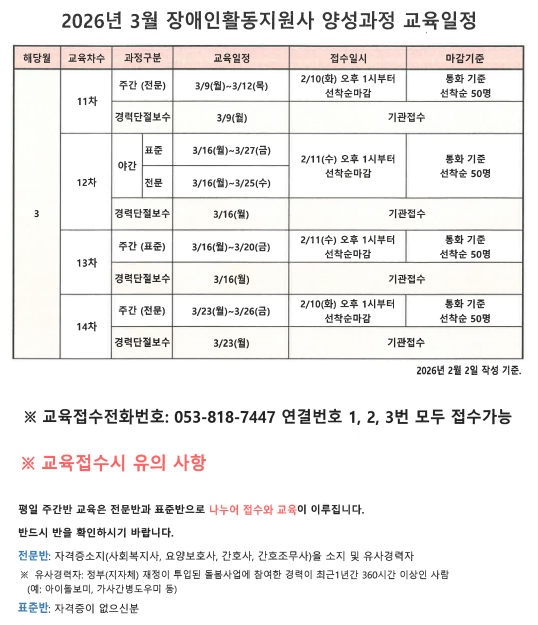 ※ 2026년 장애인활동지원사 양성교육 접수시 유의사항: