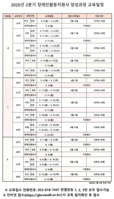 ※ 2026년 장애인활동지원사 양성교육 접수시 유의사항: